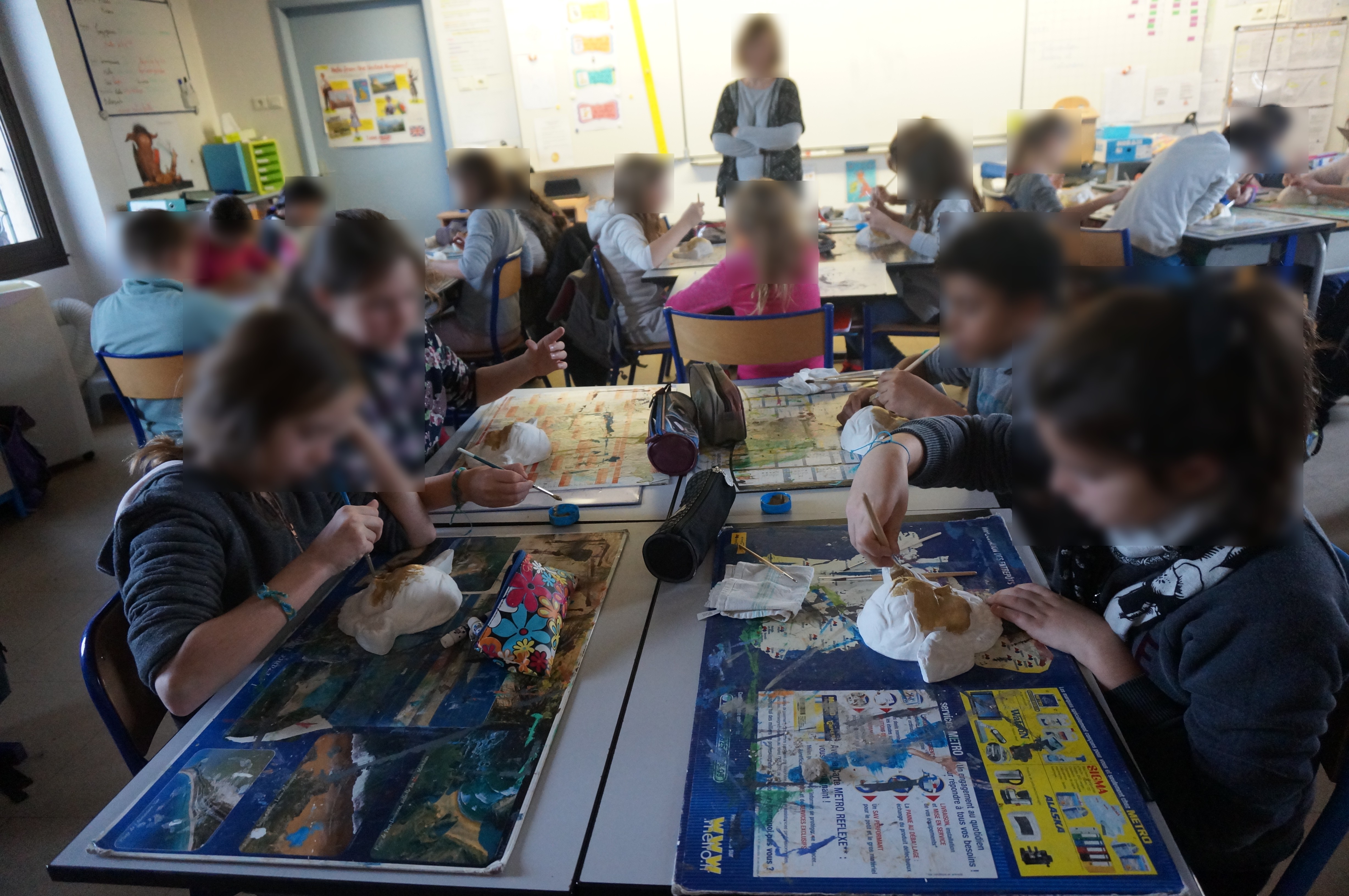 Fabrication d’objets d’inspiration préhistorique par la classe de CE1-CE2 de l’école de Velorgues © DPI